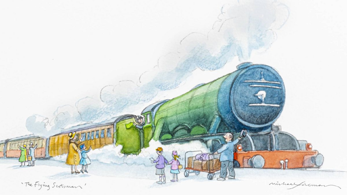 An exhibition of illustrations by Michael Foreman created for Michael Morpurgo's new book 'Flying Scotsman and the Best Birthday Ever' is on show at Doncaster's Danum Gallery.