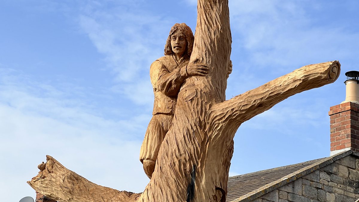 The royal oak tree outside a pub has been transformed from a dead tree to a spectacular sculpture.