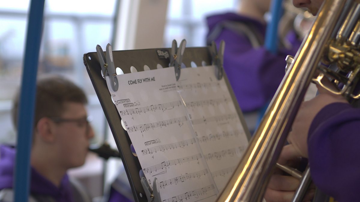 The Luton Youth Funk Orchestra performed 'Come Fly With Me' on the new Luton DART to passengers on the grand opening day.