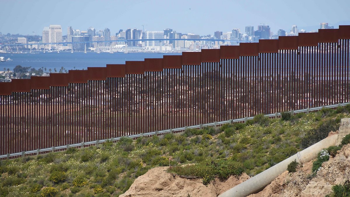 (Photo: The wall between the US and Mexico from the Mexican side. The city of San Diego is in the distance. Credit: Tim Mansel).