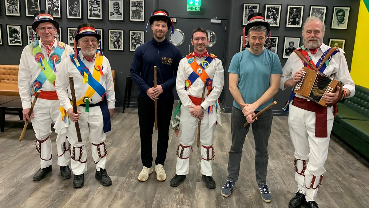 Jake and Graham from sports put on their dancing shoes with Brackley Morris Men