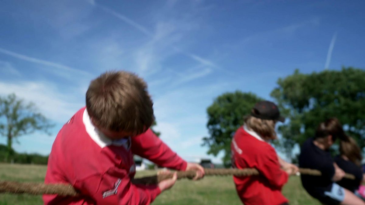 Weatherman Derek Brockway joins youngsters from Llandovery Young Farmers' Club at a social gathering in an idyllic setting and is told to pull his weight.