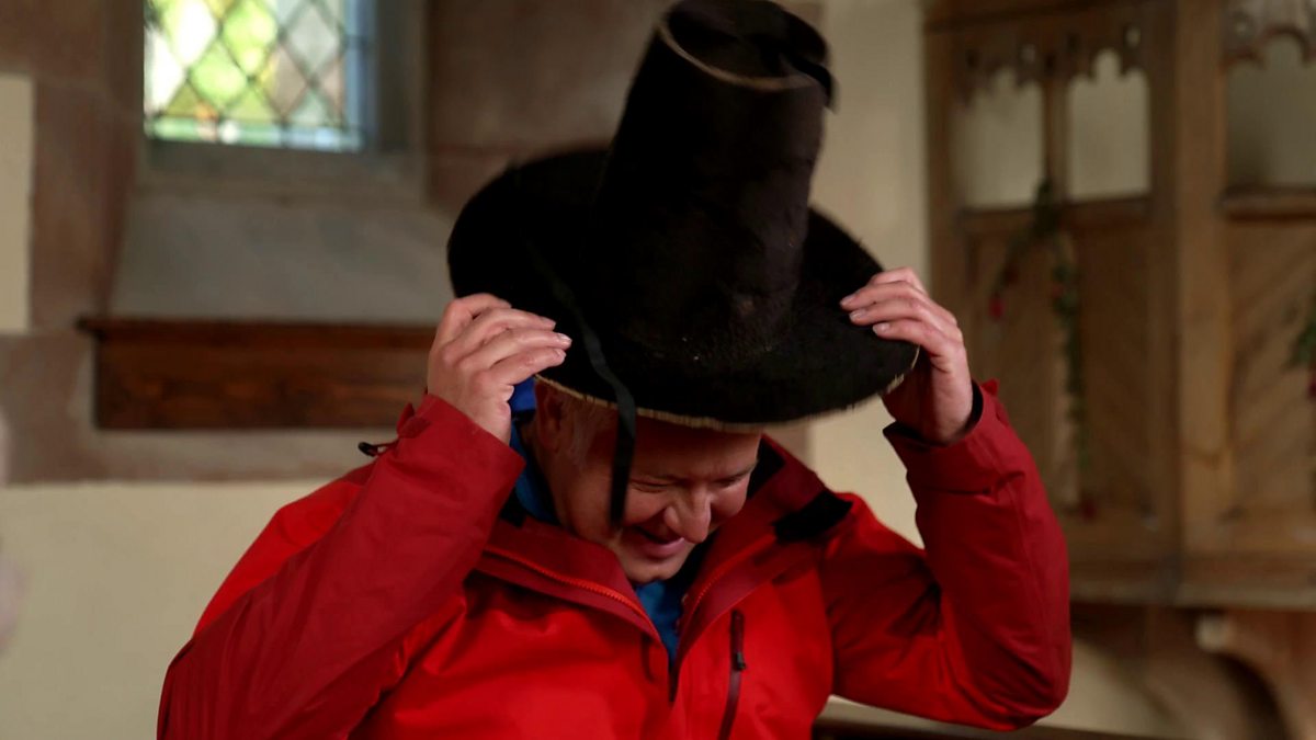 Weatherman Derek Brockway tries on a local lady's 200-year-old family heirloom, made of moleskin and sees the photograph of it being worn by its original owner.