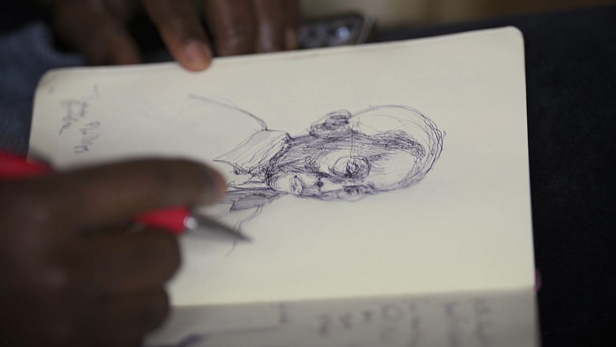 Sitter Sir Geoff Palmer meets artist Derek Fordjour