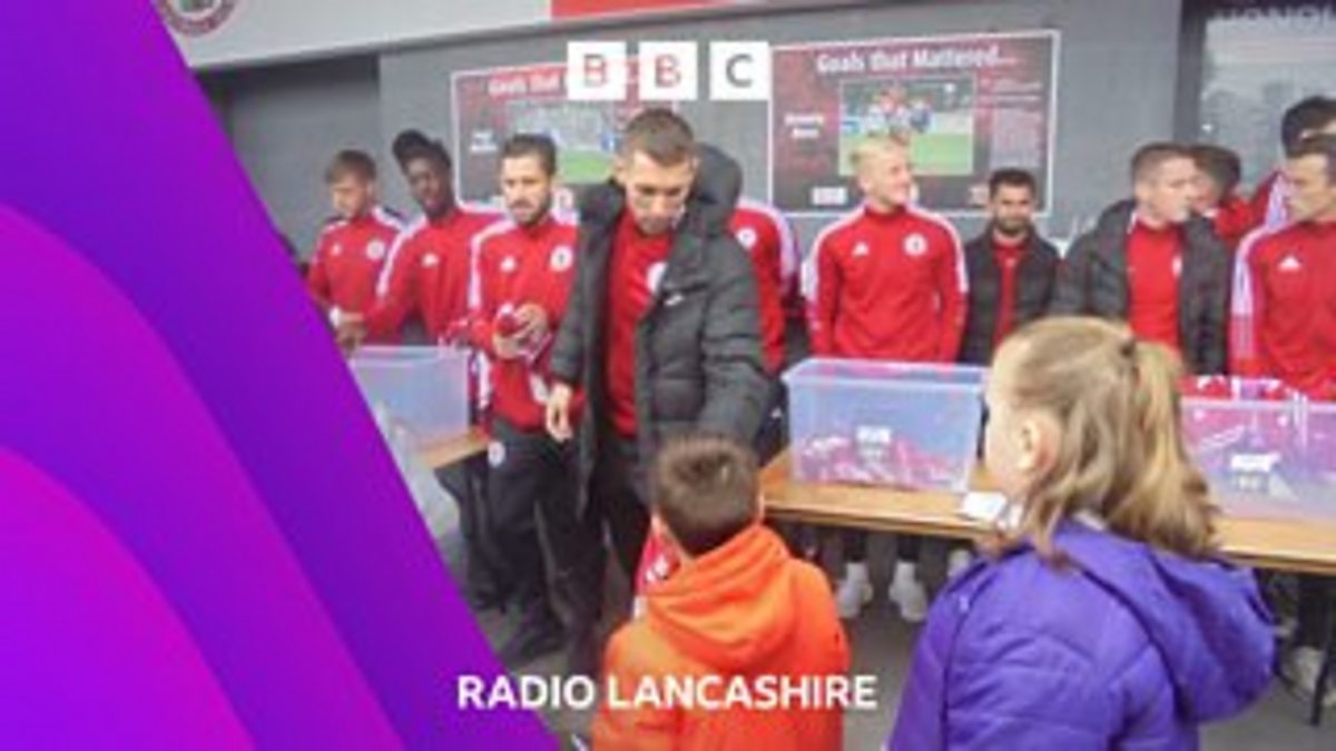 Dan Jewell joins over a thousand youngsters for the Accrington Stanley shirt giveaway