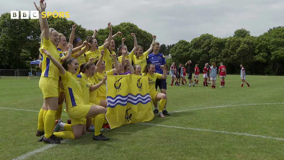 Anne-Louise Stiùbhart a' còmhradh mun gheama an aghaidh Ynys Môn a ghlèidh an sgioba 6-1.