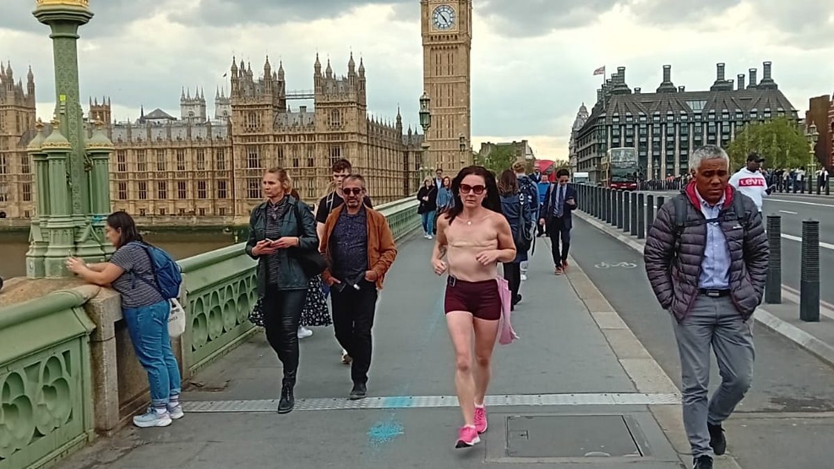 A breast cancer survivor who has had a double mastectomy now runs topless