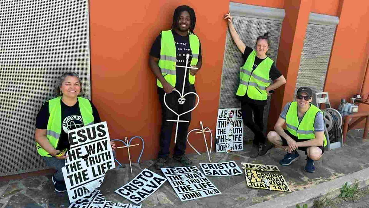 On a busy street in Los Angeles a group of people in yellow vests are holding a ladder against a lamppost. Up the ladder, 34-year-old Evan Clark is ripping down a sign that is nailed to the post. It reads “Jesus: The way, the truth, the life”. These are members of the Atheist Street Pirates, local activists who track and remove religious signs affixed to public property. They, along with other volunteers, interfaith leaders and progressive Christian pastors who have joined the pirates to remove signs, as they believe they interfere with creating a pluralistic society. Nastaran Tavakoli-Far travels to Los Angeles and joins the Atheist Street Pirates out on a hunt for religious signs,