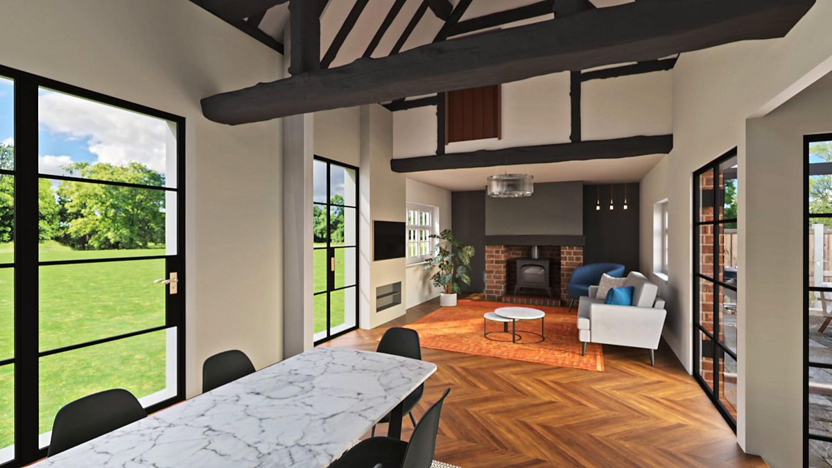 Laura's design peels back the existing internal walls to celebrate the barn's original feature's - will Fiona and Andy be wowed?