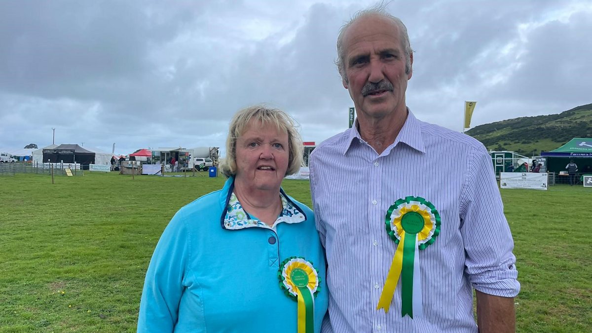 Annwen a Trefor Hughes, Cadeirydd Cylch Harlech a Llywydd Sioe Sir Meirion 2023