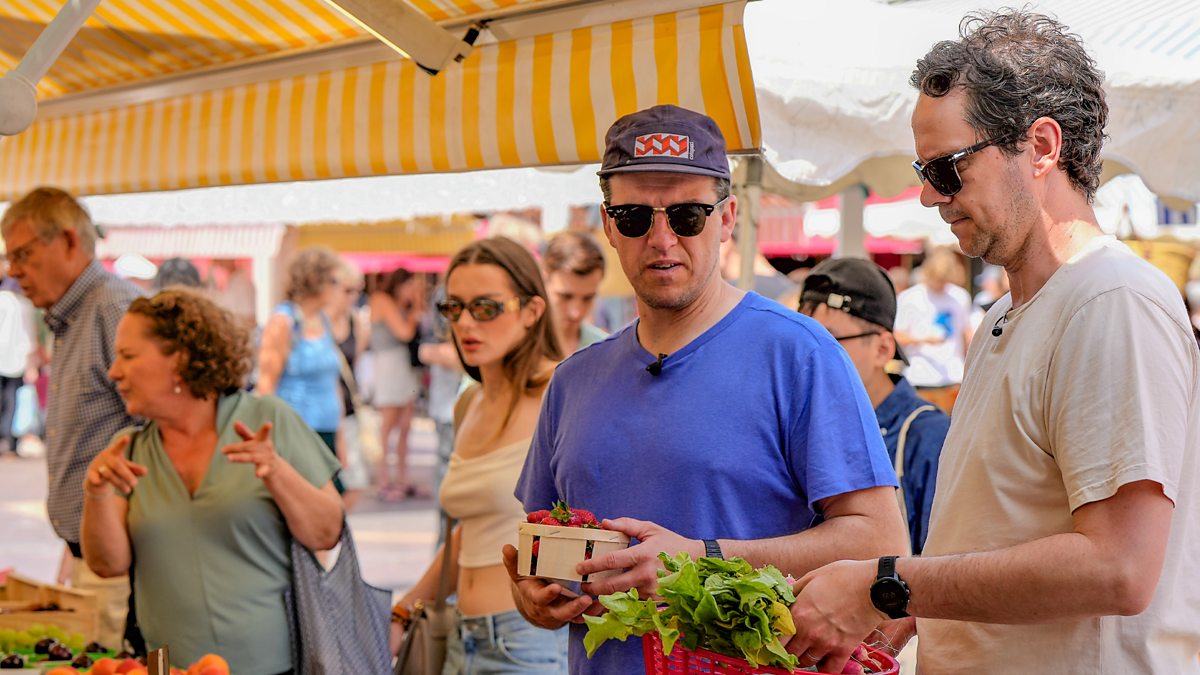 From there, a trip to the old town to meet food writer Rosa Jackson, a Canadian who's called Nice home for the last 20 years. After a whistle-stop tour of the glorious market to pick up some fresh ingredients, it’s back to Rosa’s little French kitchen for the Pizza Boys’ first lesson – ratatouille, Nicoise-style.