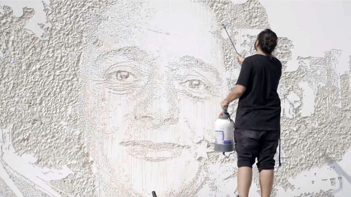 Watch Vhils create a mural for UNESCO using chisels and power tools