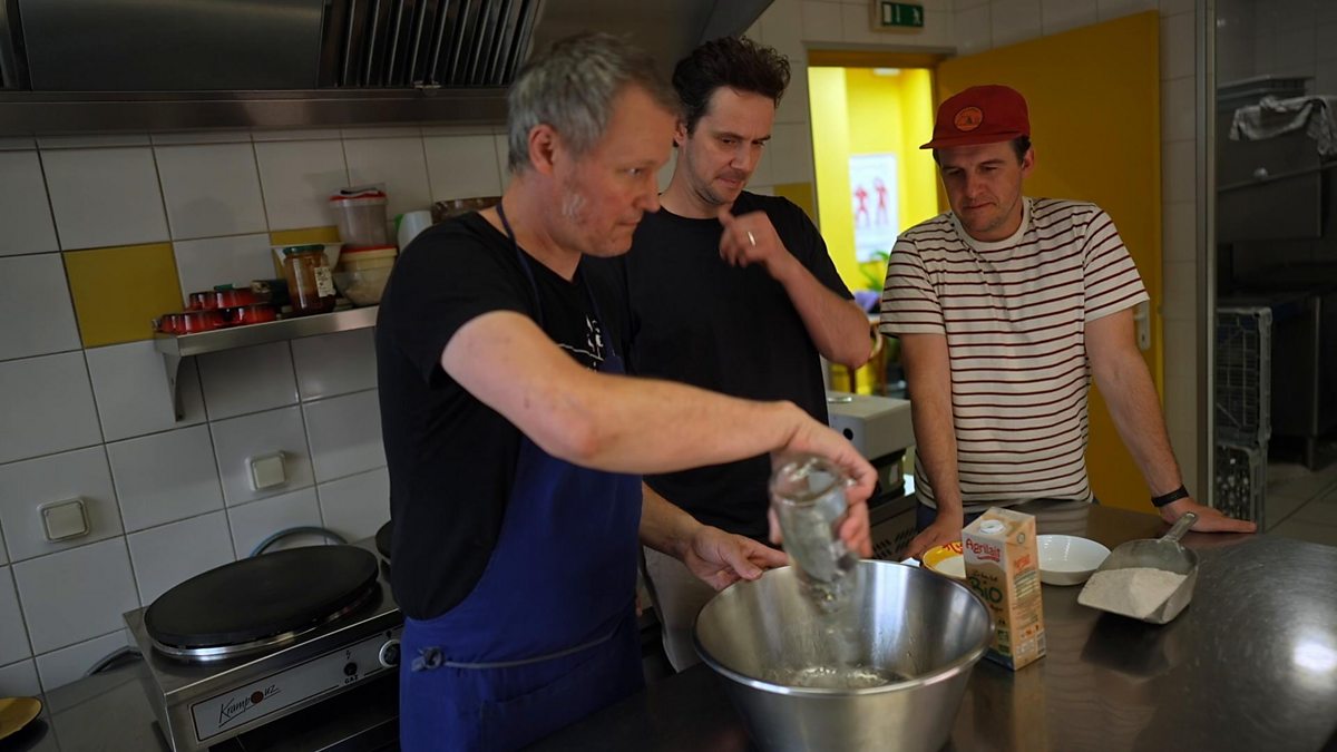 The Pizza Boys watch Breton chef, Jean Marie, make gorgeous galettes, then have a go themselves.