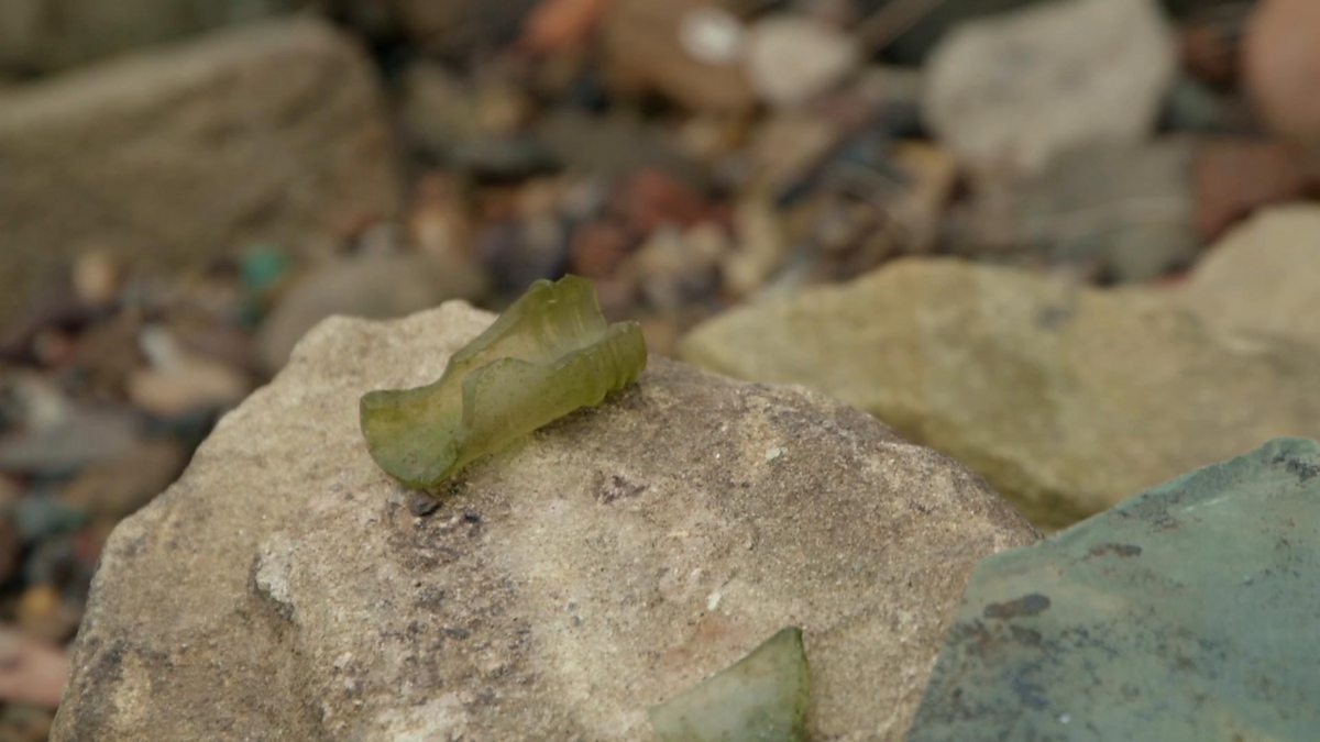 In Seaton Sluice, Ben Robinson reminisces about bottle hunting in his youth while searching for fragments of glass in the hillside.