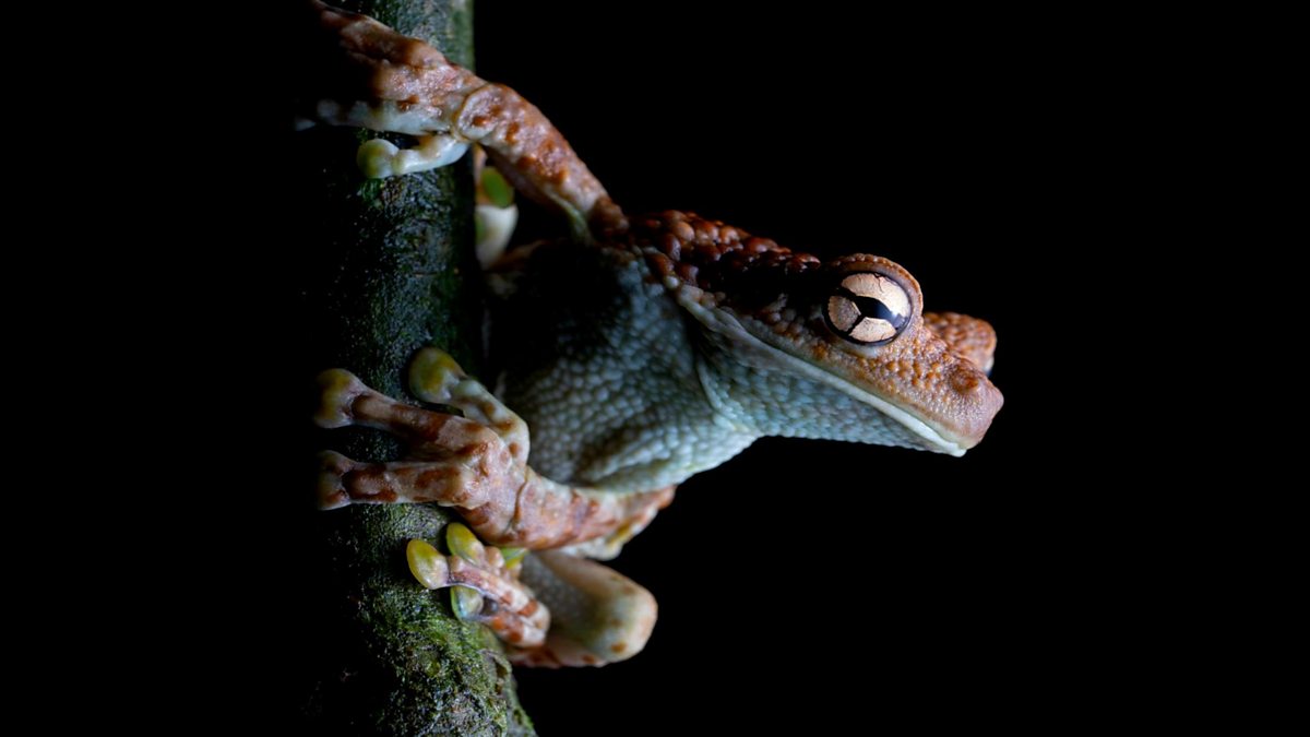 Frog expert, Jaime Culebras mimics frog calls from the cloud forest of Ecuador.