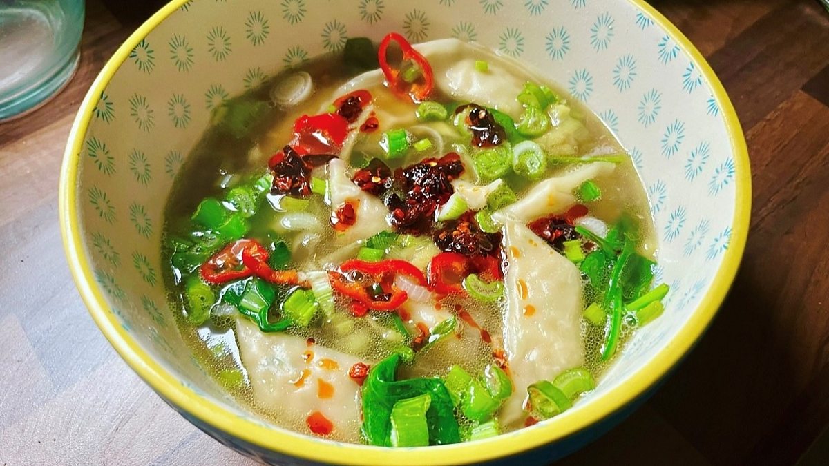 • 6 filled chicken dumplings, I use Itsu dumplings available in the freezer section of most supermarkets, can be vegetable dumplings also