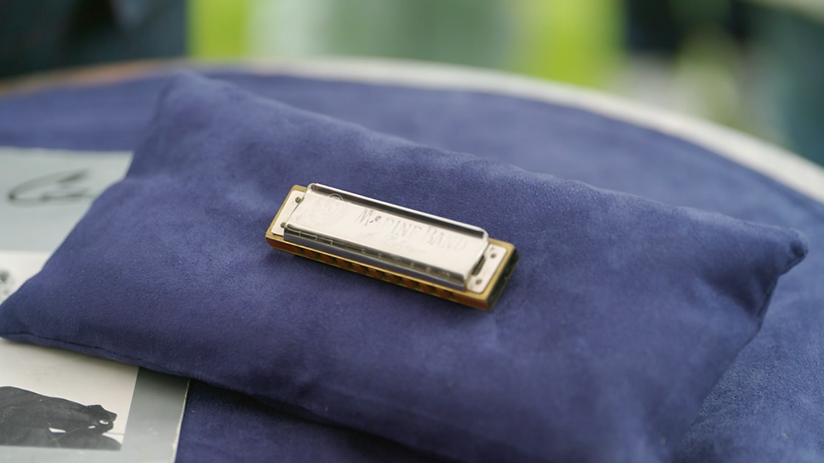 Lisa Lloyd is delighted to see a mouth organ owned by the Man in Black
