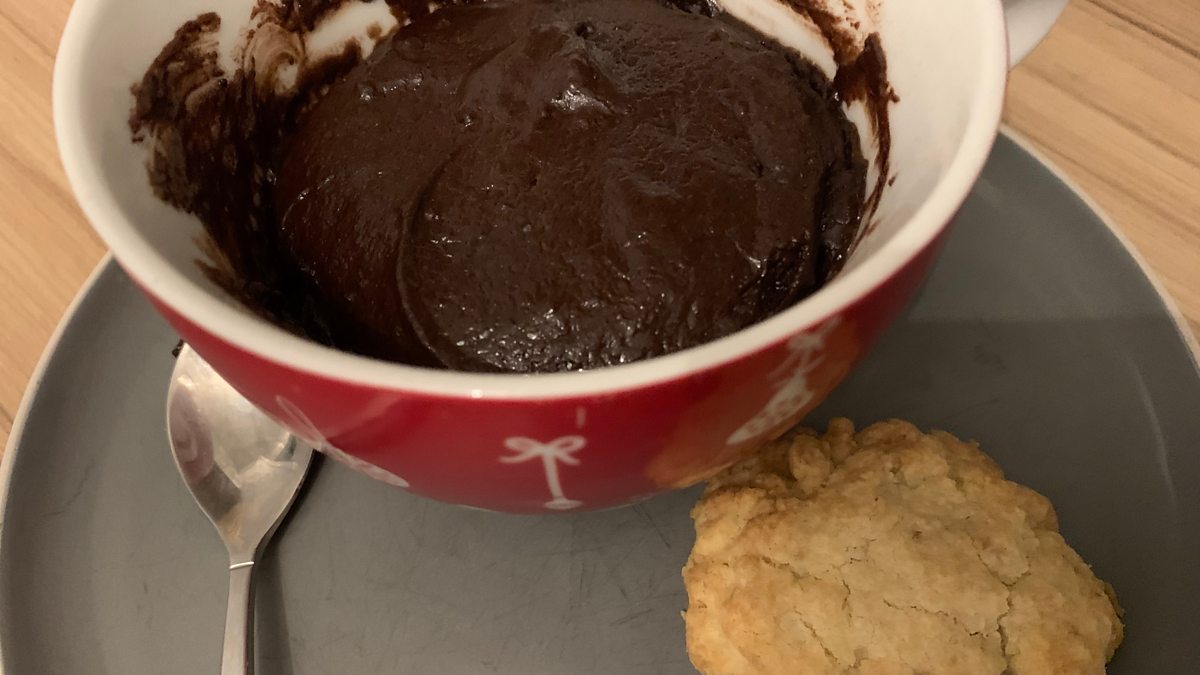 Hot chocolate mug cake with sugar-free short bread