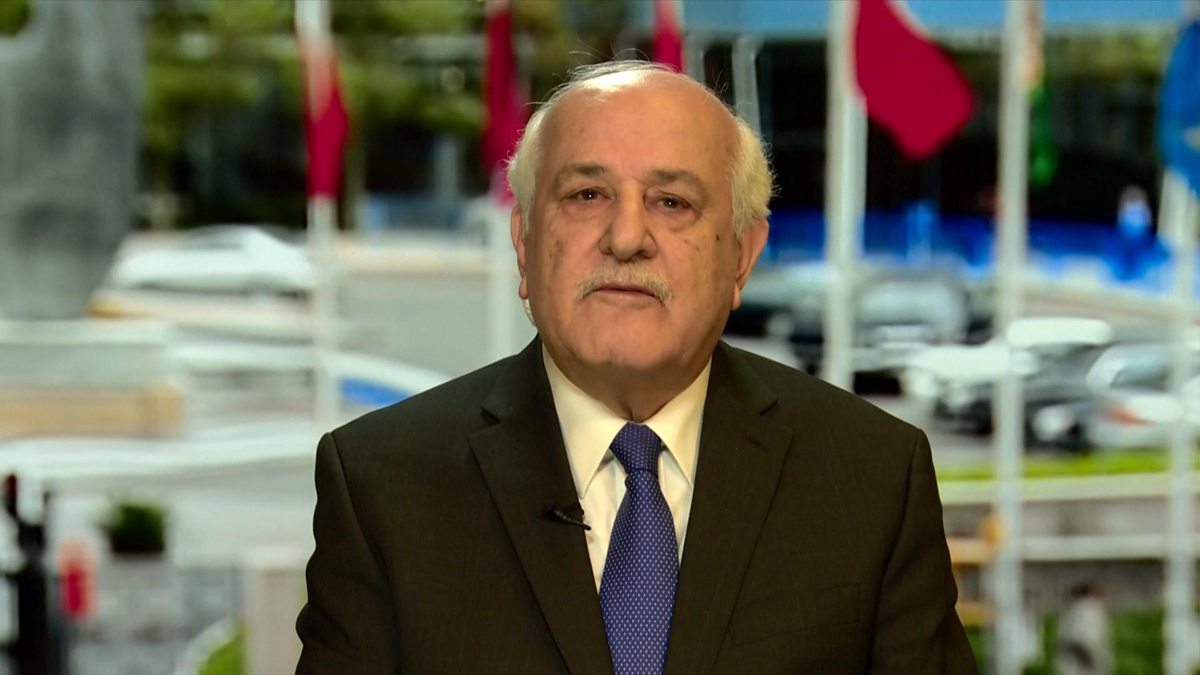 Riyad Mansour was asked by Stephen Sackur about President Joe Biden’s initiatives to deliver aid via airlifts and a temporary port.