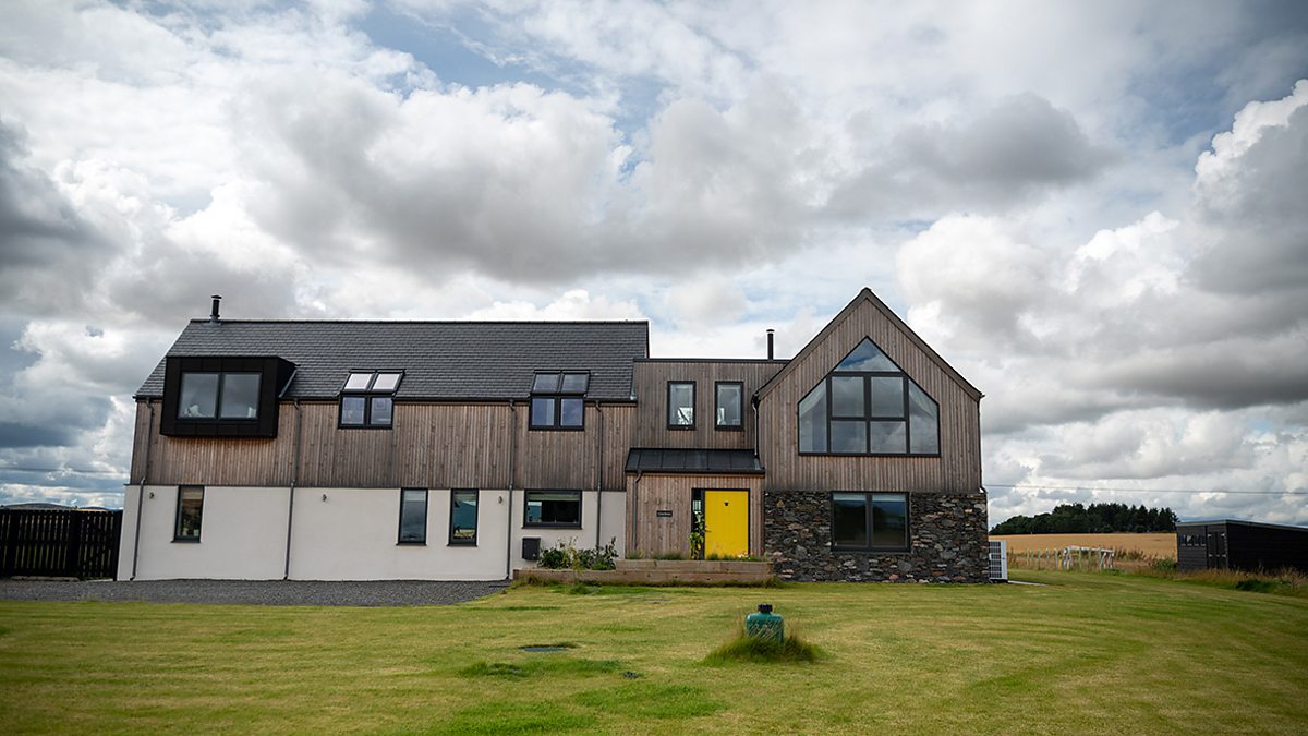A contemporary self-build barn-style dwelling near Inverurie on the site of a family farm.