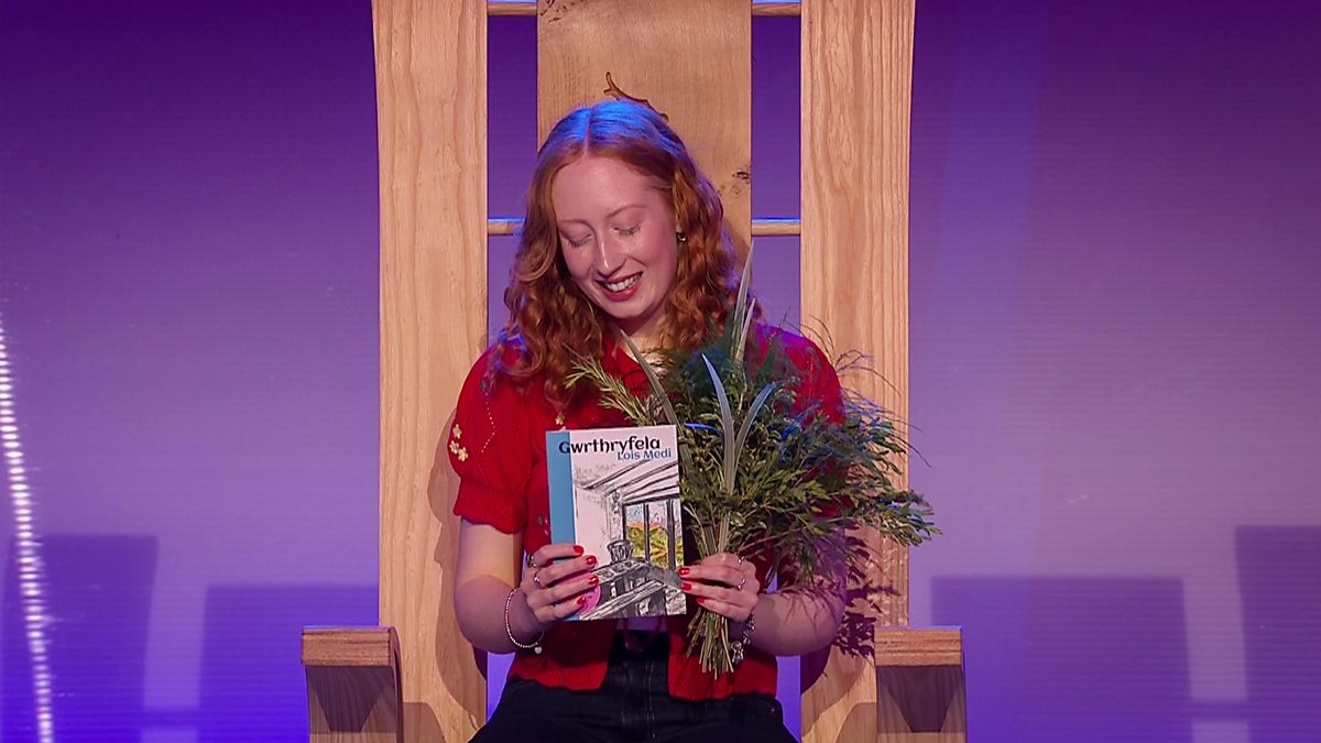 Darllediad byw o brif Seremoni'r dydd - Defod y Cadeirio - pwy fydd yn plesio'r beirniaid Tegwyn Pughe Jones a Mari George? Live broadcast of the Eisteddfod's Chairing Ceremony.