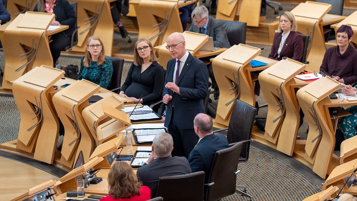 John Swinney is quizzed by opposition party leaders during FMQs.