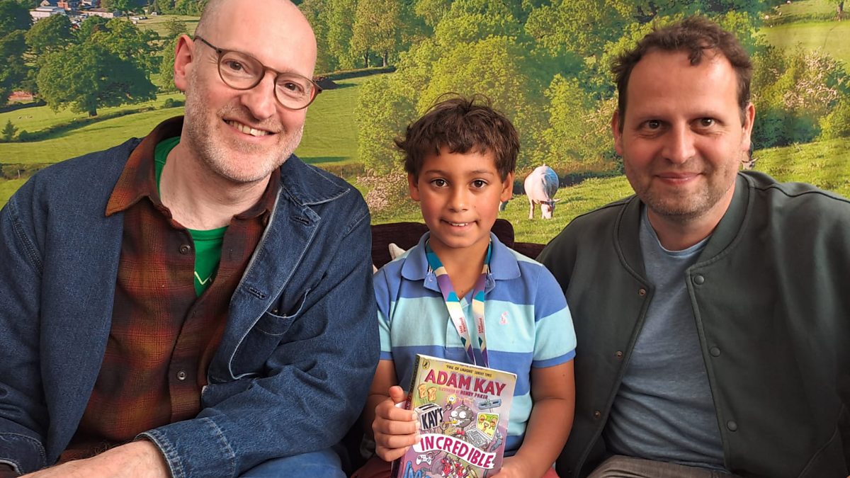 Author Adam Kay and illustrator Henry Paker chat to young reporter Miles at Hay Festival