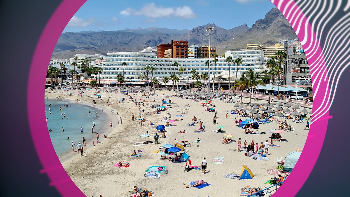 Darren Laing a' còmhradh ri Ailean Peutan is Iain MacDiarmaid is connspaid anns na Canàraich mu bhuaidh turasachd air an àite.