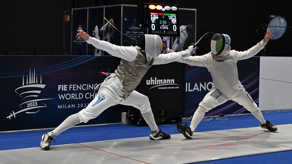 Image: Cyprus' Alex Tofalides (L) competes against Kuwait's Ali Abbas during their Foil Men's Senior Individual qualifying bout as part of the FIE Fencing World Championships at the Fair Allianz MI.CO (Milano Convegni) in Milan, on July 24, 2023. (Photo by Andreas SOLARO / AFP via Getty Images)