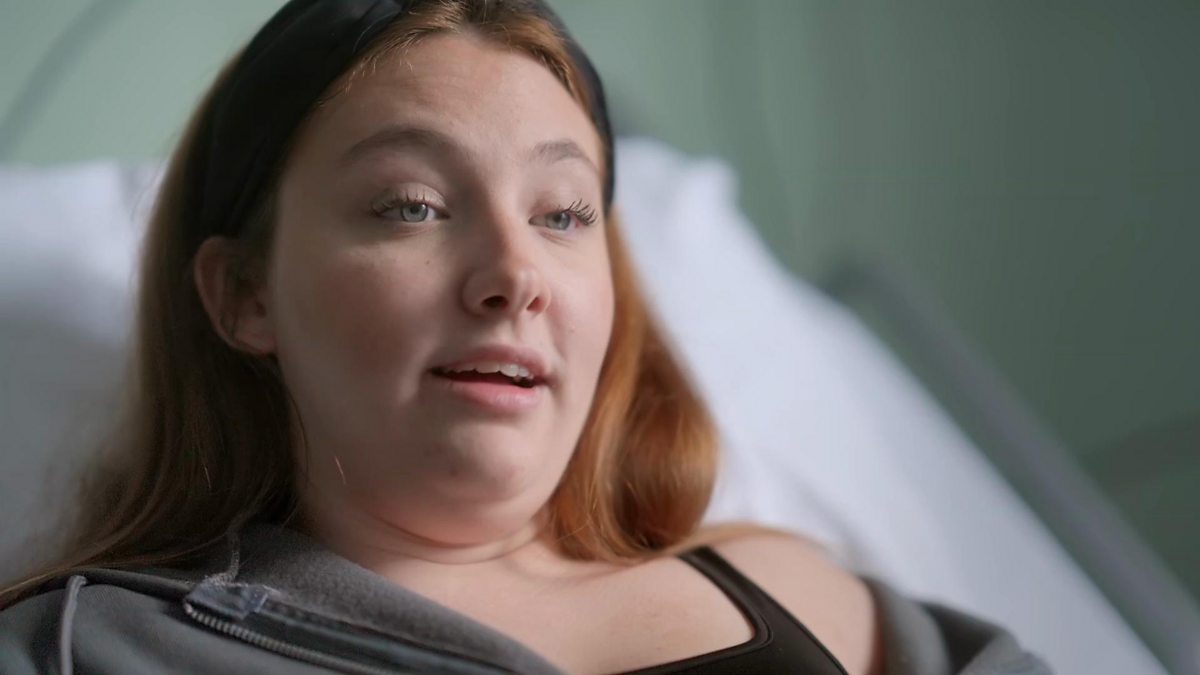 Surgeon George Eralil visits patient Chelsea the day before her brain tumour operation.