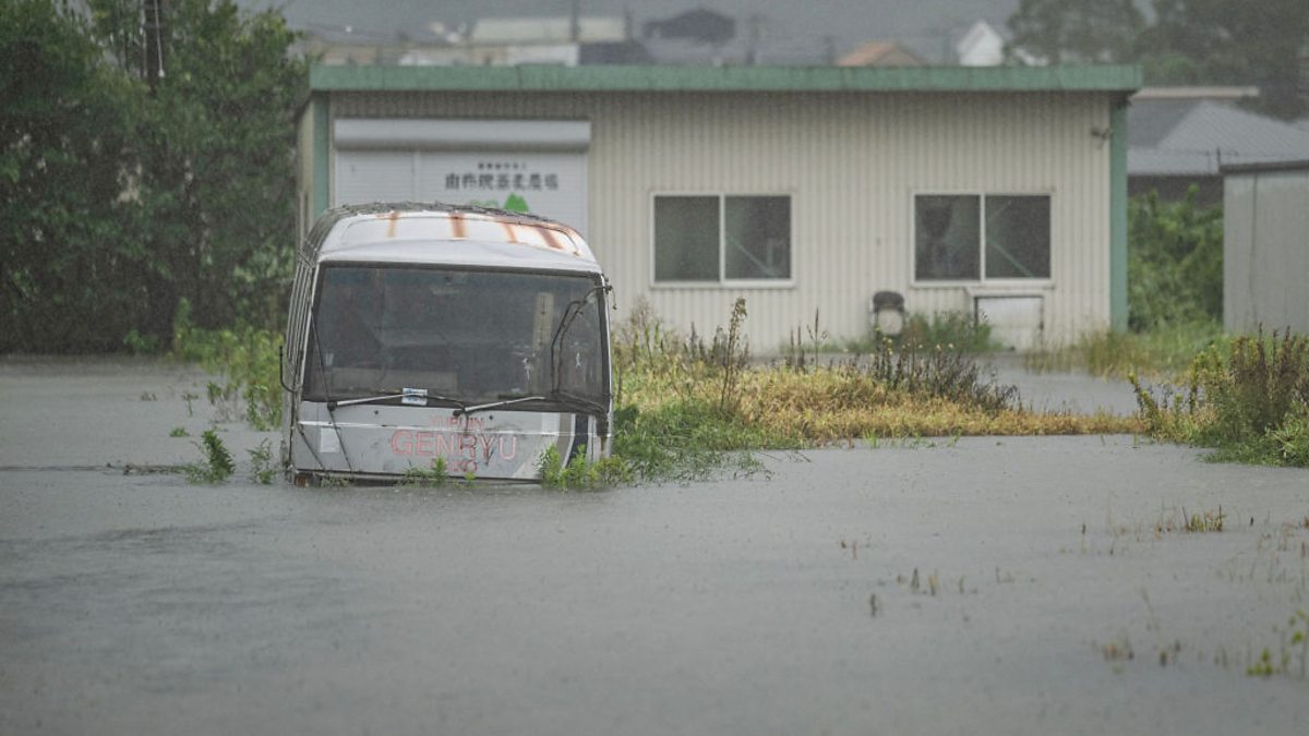 Photo: A bus submerged in Yufu city, Oita prefecture, Japan Credit: Getty Images