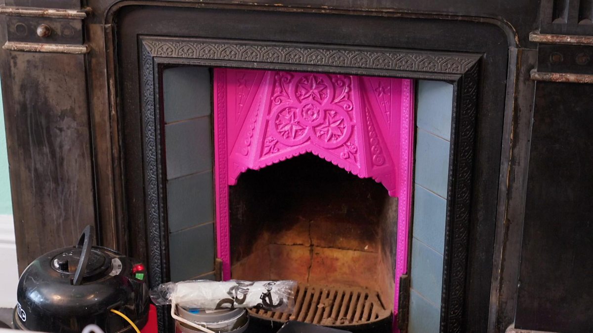 Alan and Pudsey arrive with a delivery for the celebrity designers, and Jon Richardson is shocked by Joanne McNally's fireplace design.