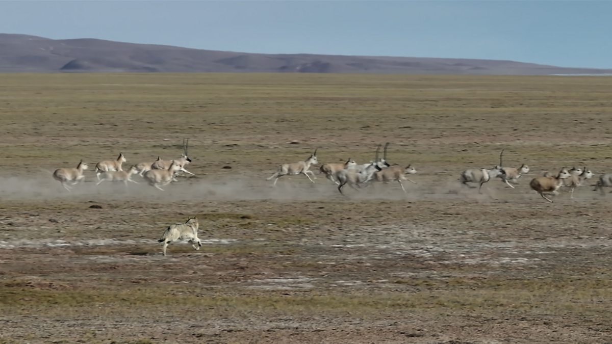A lone wolf uses its incredible endurance to chase down fast and powerful chiru antelope.