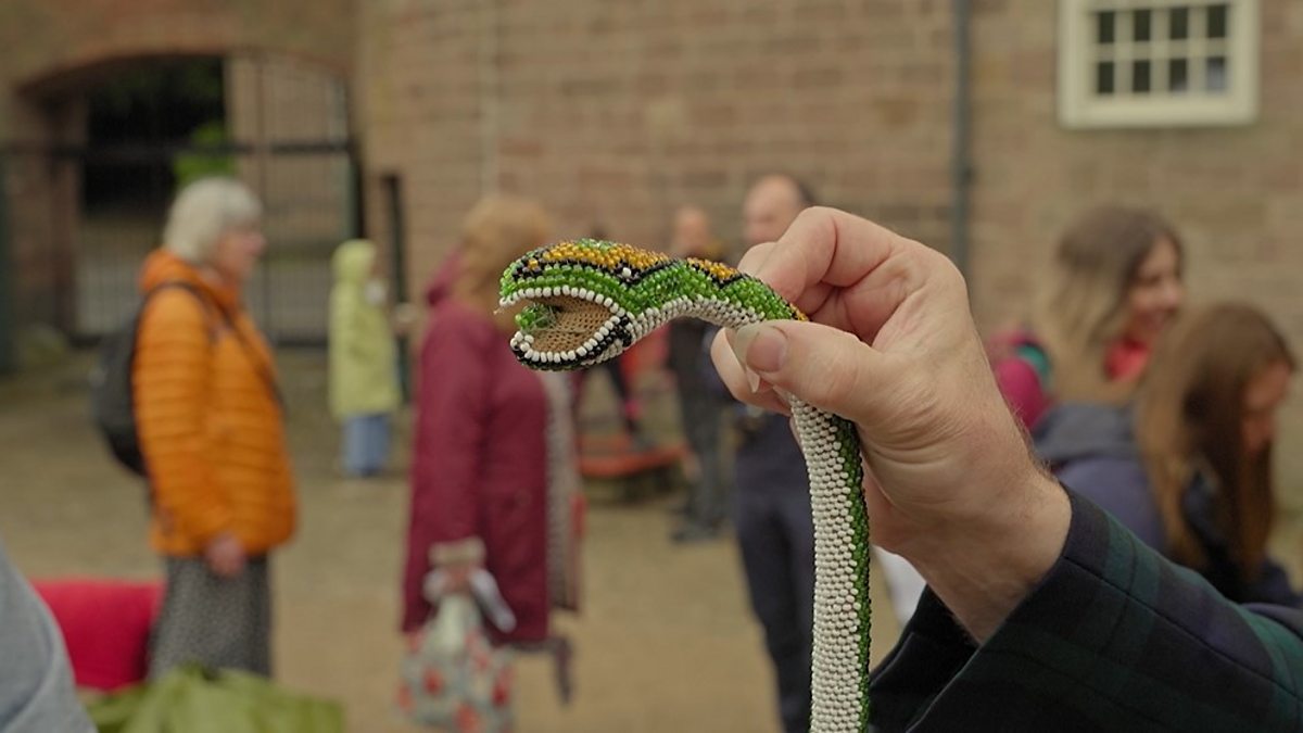 Marc Allum is charmed by a beaded snake made by Turkish prisoners of war