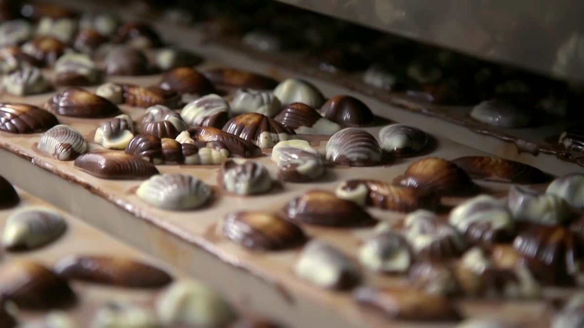 Paddy McGuinness visit a chocolate factory in Belgium that produces four million chocolate seashells every day.