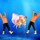 Mae'r pysgod yn arwain Kim, Cai a Cranc at Crwban. The fish lead Kim, Cai and Cranc to ...(A)