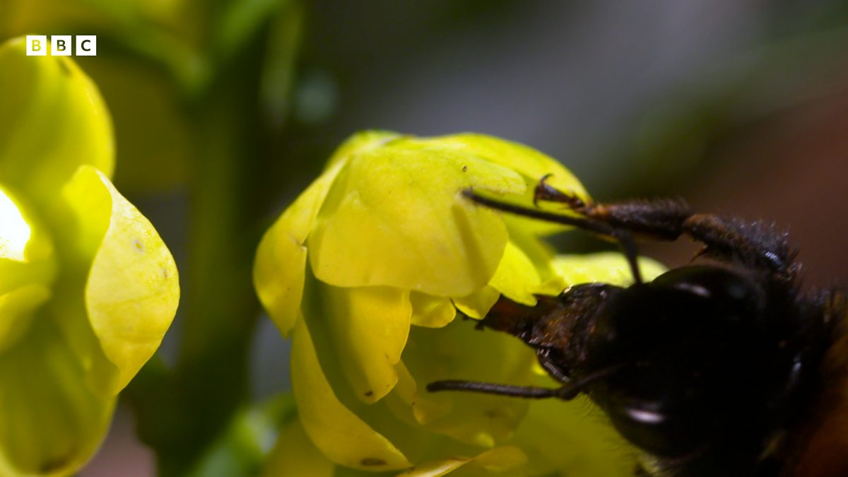 Mahonia helps a buff-tailed bumblebee queen get much needed winter food