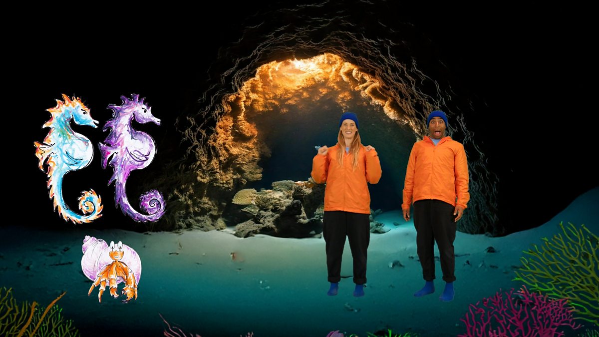 Mae Kim, Cai a Cranc yn cwrdd â Morfeirch ac yn eu dilyn cyn neidio allan o'r dwr. Kim, Cai and Cranc meet Morfeirch and they follow them.
