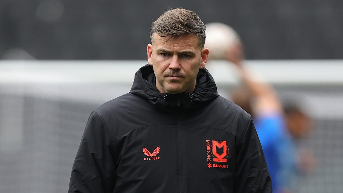 MK Dons interim head coach Ben Gladwin reacts after losing 2-0 against Accrington Stanley