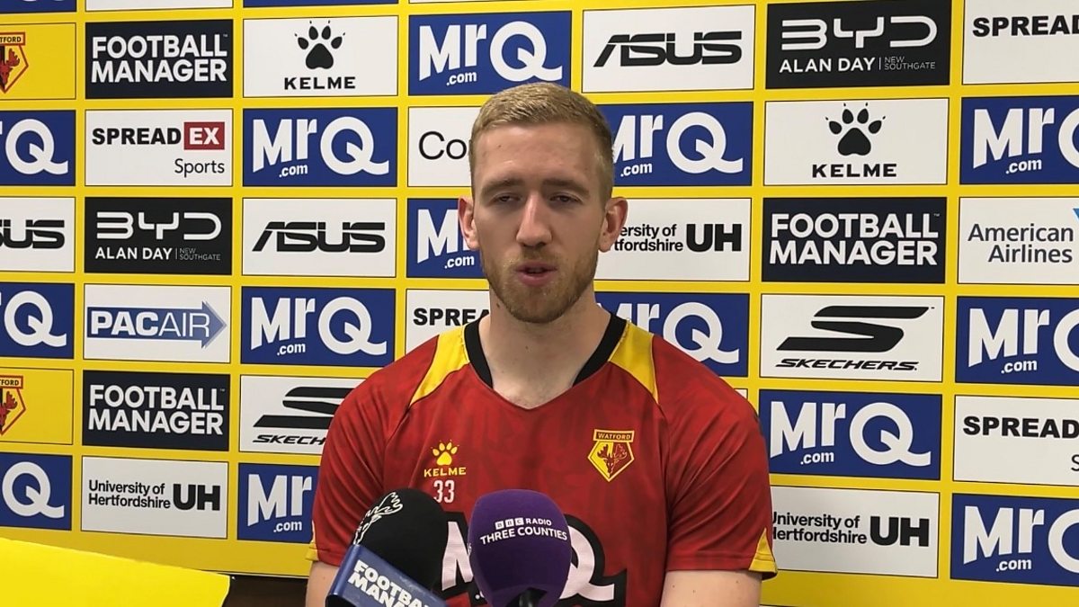Watford goalkeeper Egil Selvik chats to Geoff Doyle.