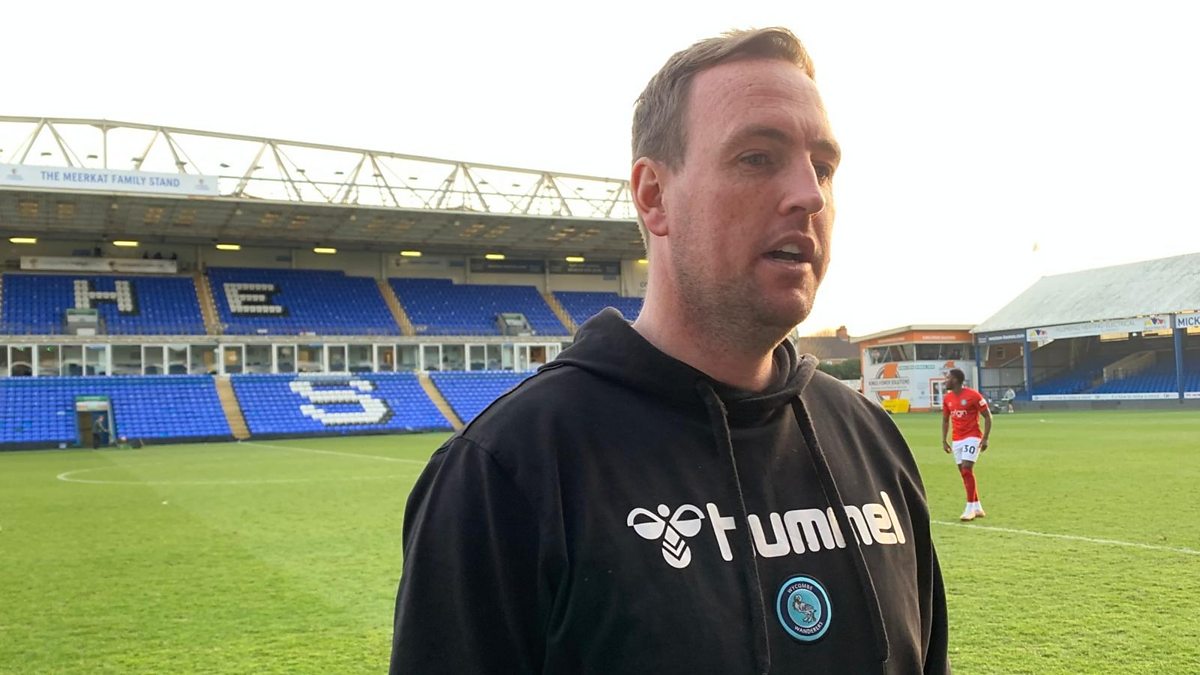 Wycombe's Mike Dodds reacts after drawing 1-1 at Peterborough.