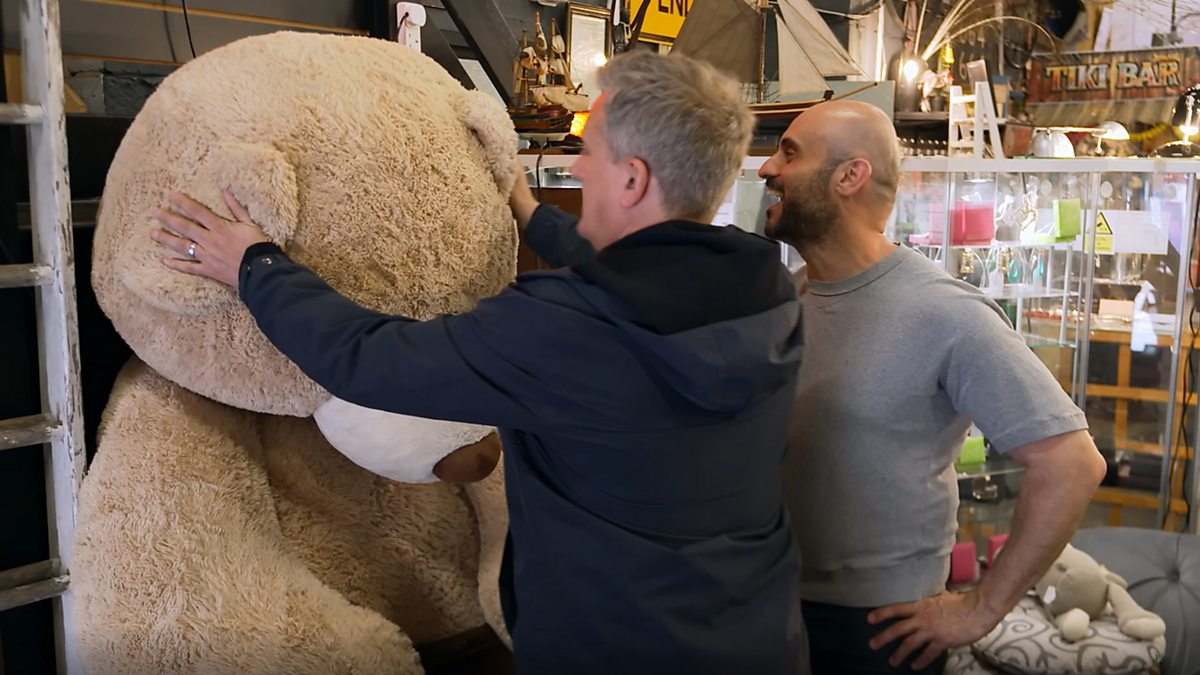 Serhat and Aled struggle to decide between a giant teddy bear or a set of creepy glass clowns.