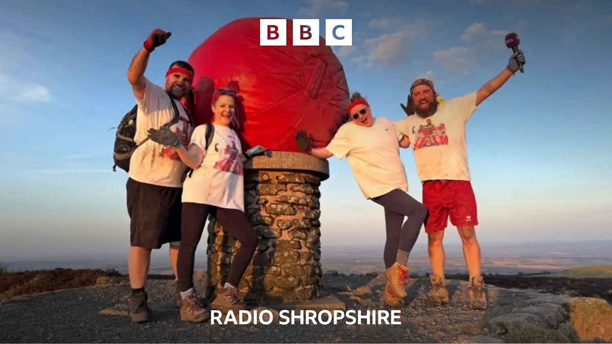 BBC Radio Shropshire's Breakfast Team took on a 12-hour challenge with "Sir Steve Red Nose", scaling the Stiperstones, Titterstone Clee and finally, Shropshire's highest peak, Brown Clee Hill, reaching a height of 1,770 feet.