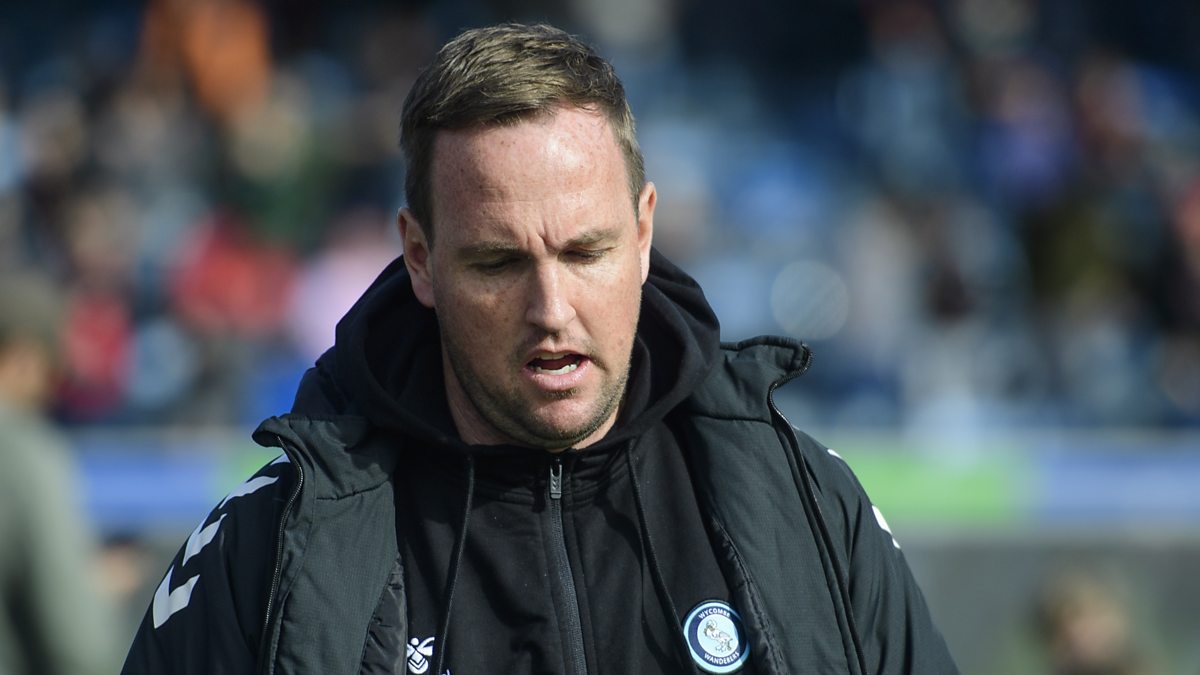 Mike Dodds reacts after Wycombe lose 1-0 against Reading in League One.