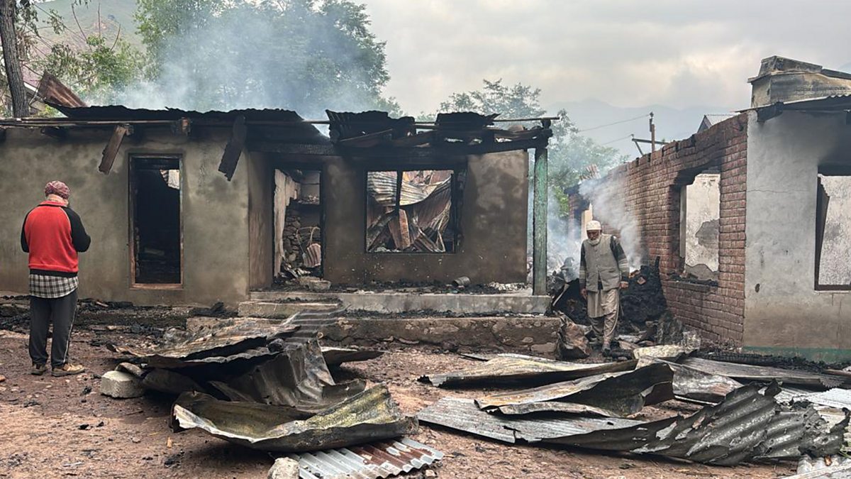 Photo: The devastations caused by the overnight attack on a small town close to the Line of Control, in Indian-administered Kashmir.