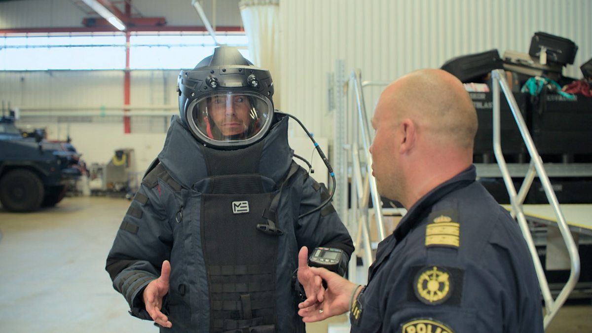 As Sweden faces an unprecedented crimewave, including a spate of bombings, Simon meets Jon Wåhlander who commands an elite police bomb unit, and tries on a protective suit worn in urban situations.