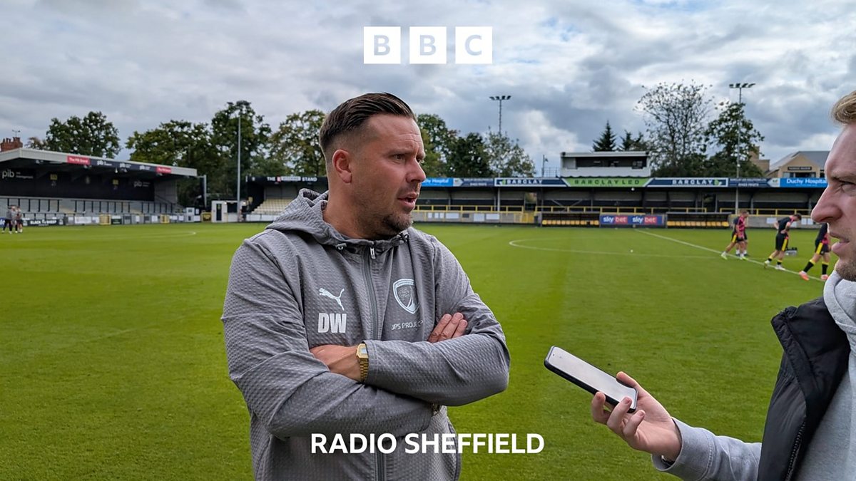 Chesterfield assistant boss Danny Webb reacts to their 2-1 win at Harrogate Town.
