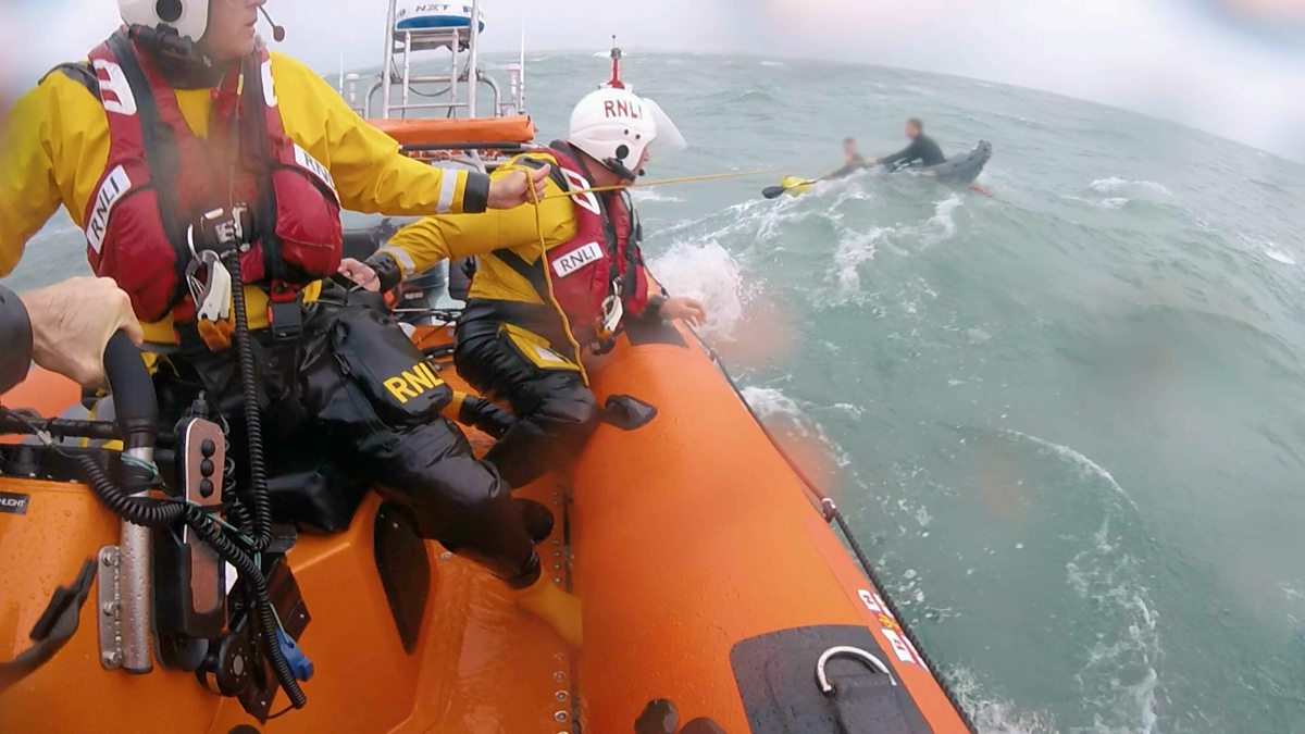 In Portaferry, Northern Ireland, the crew face an increasingly desperate search for two kayakers who’ve been blown out to sea in 50 mile an hour winds.