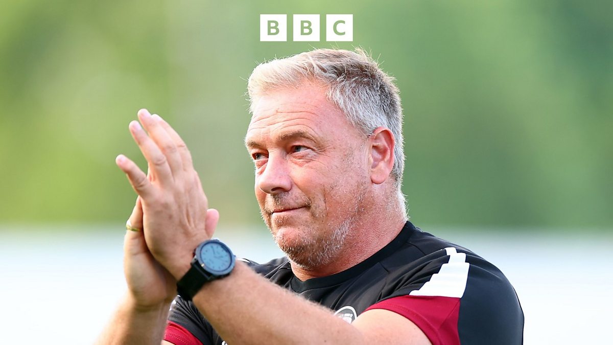 Scott Lindsey speaks to Gary Smith after Crawley Town's 2-0 win over Cheltenham.