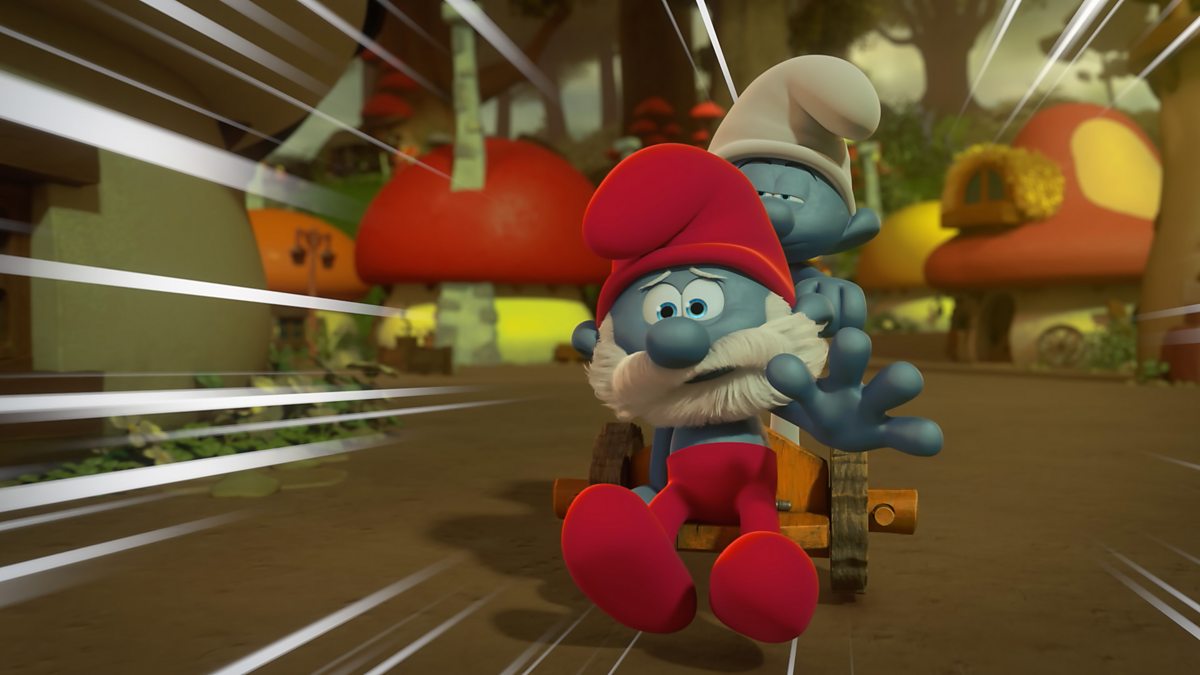 Mae Blodyn a Peniog yn cael eu cludo i fydysawd arall lle ma'r Smyrffs yn llwyd a blin. Blossom and Brainy find themselves transported to another universe where the Smurfs are grey and mean.